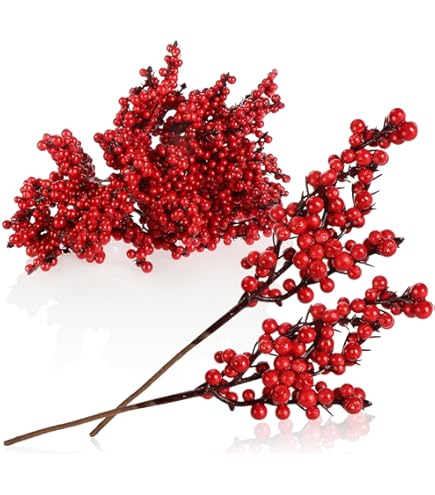 20 Stück Künstliche Rote Beerenzweige - Weihnachtsdeko Für Kränze & Bastelarbeiten 17cm