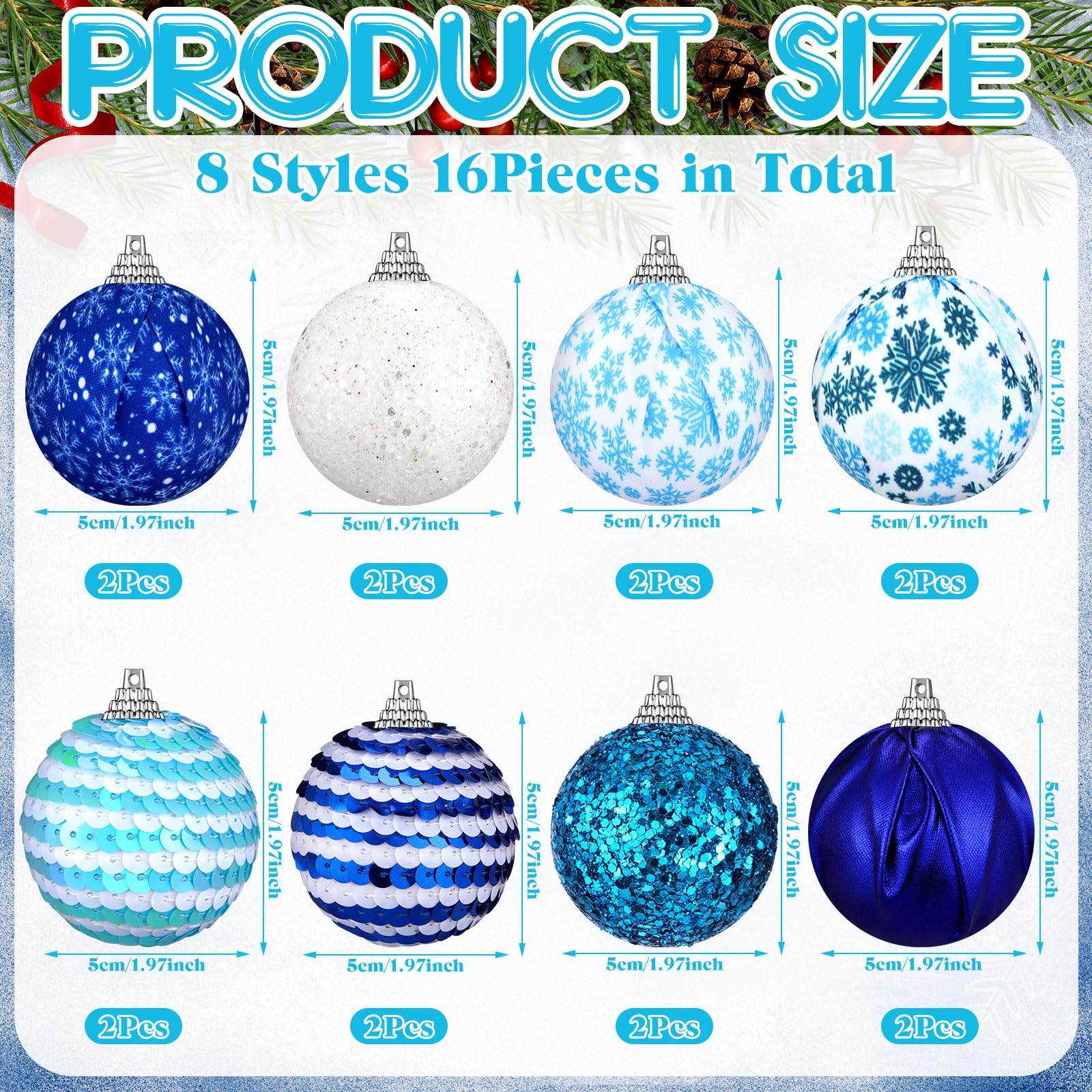Wunderschöne Weihnachtskugeln die deinen Baum zum Strahlen bringen! 12 Stück in verschiedenen Blautönen, Weiß, Rot und Grün. Jede Kugel ist 8cm groß und mit weicher Beflockung überzogen. Der feine Glitzer fängt das Licht wunderschön ein. Sieht aus wie frisch verschneit - total winterlich! Mit Aufhängebändern - einfach an den Baum hängen. Nicht nur für Weihnachtsbäume super - auch für Kränze, Girlanden oder Tischdekoration. Macht jedes Zimmer weihnachtlich gemütlich. Die Mischung der Farben sieht richtig edel aus. Perfekt für Weihnachten, aber auch für Hochzeiten oder Partys im Winter. Leicht und robust - halten viele Jahre wenn man sie gut verstaut. Einfach dekorieren und sich an der festlichen Stimmung erfreuen. Dein Weihnachtsbaum wird zum absoluten Hingucker! Bringt sofort Weihnachtsstimmung in dein Zuhause - einfach magisch!