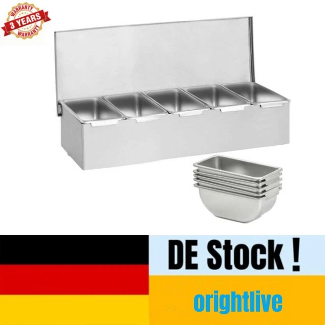 Professionelle Aufbewahrung für deine Küche! Dieses 5-teilige Gastronorm-Set aus Edelstahl ist perfekt für Restaurants, Imbisse oder auch für zu Hause. Jeder Behälter fasst über 2 Liter - genug Platz für Gewürze, Beilagen oder Zutaten.