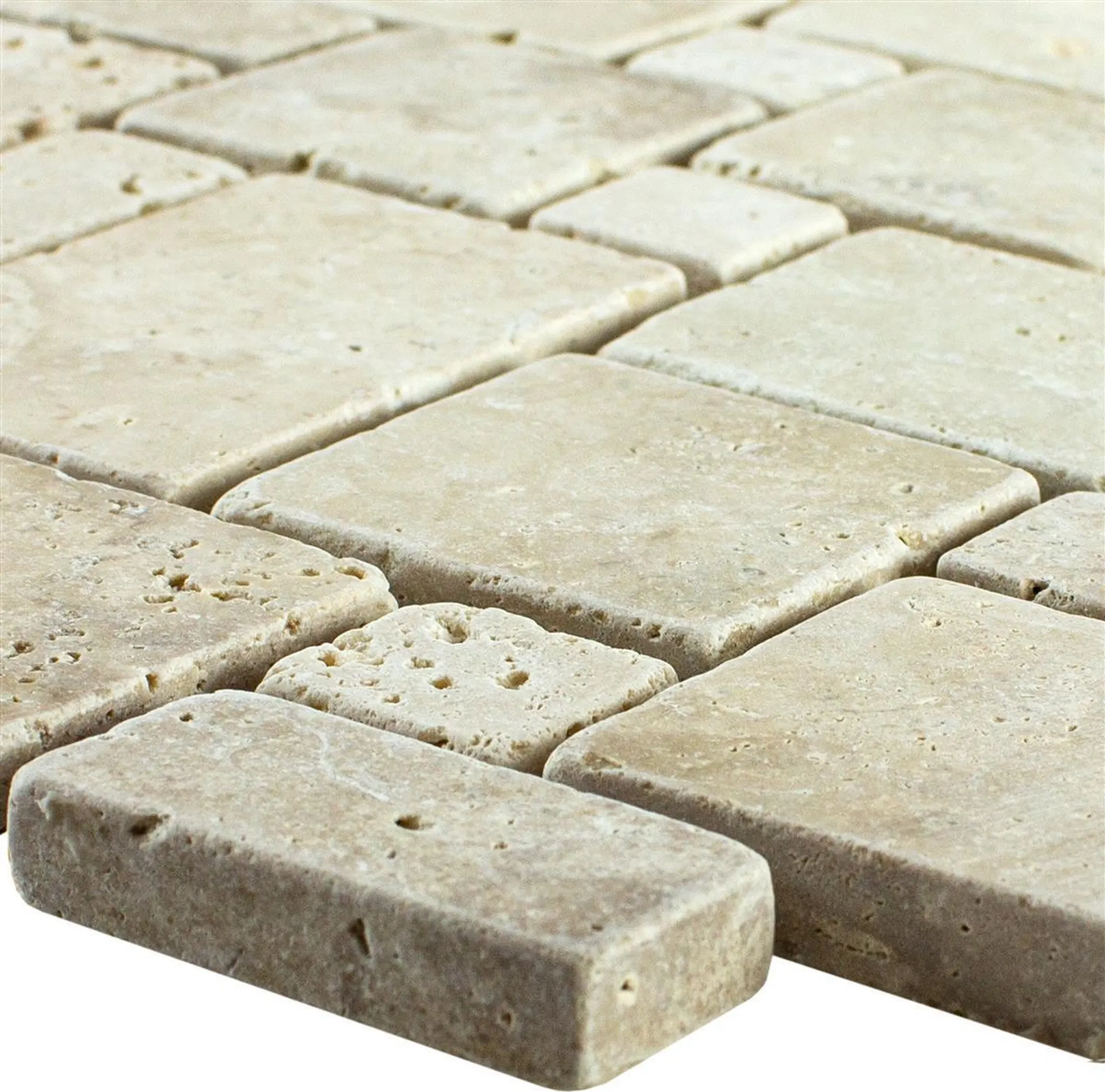 Wunderschöne Travertin Fliesen für Bad und Küche! In warmen Braun-, Beige- und Rottönen. Jede Matte ist 30,5x30,5cm groß mit einzelnen 48x48mm Steinchen. 10mm stark, rutschhemmend und frostbeständig - also auch für draußen geeignet. Perfekt für Duschwände, Böden oder als Akzentwand. Der natürliche Stein verleiht jedem Raum sofort mediterranes Flair. Einfach zu verlegen und sieht immer edel aus. Macht dein Bad oder deine Küche zum echten Hingucker! Naturstein für ein besonderes Wohlfühl-Ambiente.