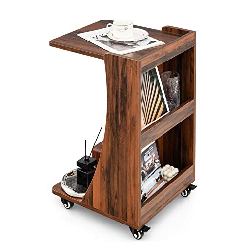 YCYHXJB Rollbarer Beistelltisch Mit Höhenverstellung | Pneumatischer C-Form Tisch Für Bett & Couch