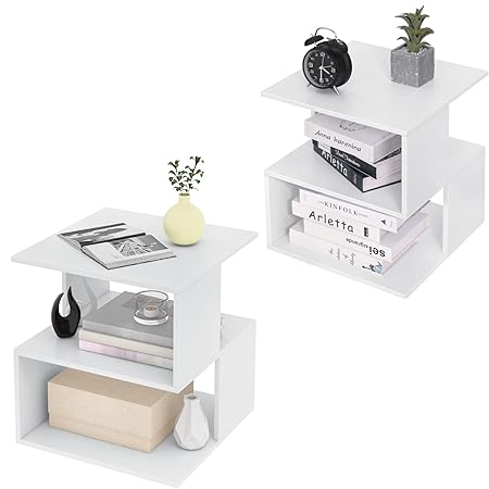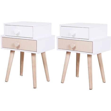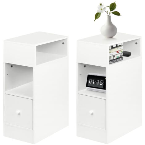 Somdot Nachttisch 2er Set - Beistelltisch Mit Schubladen Weiß