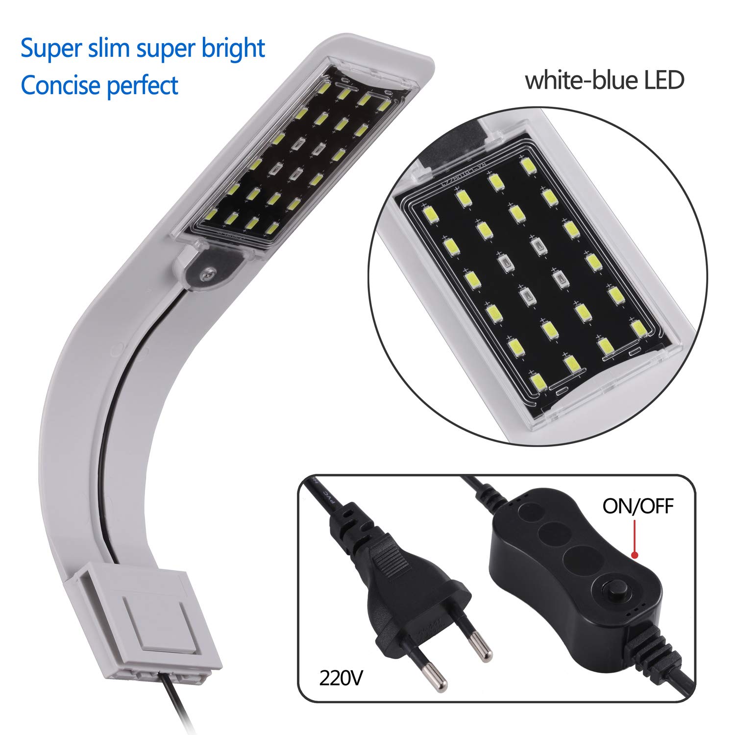 Aquarium LED Beleuchtung - Ultradünne Clip-Lampe Mit Weiß & Blaulicht Für Wasserpflanzen