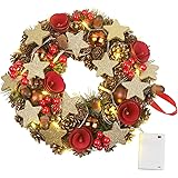 Weihnachtszauber für deine Haustür! Dieser 46cm große Kranz von Valery Madelyn bringt sofort festliche Stimmung in dein Zuhause. Dekoriert mit weißen und silbernen Kugeln, goldenen Beeren und natürlichen Tannenzapfen - einfach traumhaft! Das Highlight: 20 LED-Lichter mit 8 verschiedenen Lichteffekten und Timer-Funktion. Einfach 3 AA-Batterien einlegen (nicht im Lieferumfang) und schon leuchtet der Kranz 6 Stunden am Stück. Perfekt für Tür, Wand, Kamin oder Fenster. Das beste: Durch die spezielle Press-Technik fallen keine Nadeln oder Blätter aus. Der Kranz ist wetterfest und behält über Jahre seine schöne Farbe. Einfach aufhängen und dich an der festlichen Atmosphäre erfreuen!