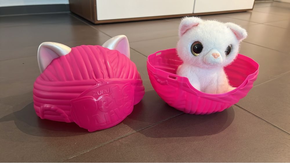 Miau! Stelle dir vor, du hättest eine eigene süße Katze, die dich liebt und sogar auf dir knetet - genau das macht furReal Bella! Dieses superweiche, orange-weiße Kätzchen ist 25,4 cm groß und hat funkelnde grüne Augen. Streichle sie am Kopf und sie beginnt zu schnurren, zu miauen oder gibt sogar eine Pfoten-Massage. Wenn du das lila Spielzeug vor ihrer Nase wedelst, stellt sie sich auf die Hinterbeine und spielt. Das absolute Highlight: Setze Bella auf deinen Schoß, halte den Sensor 5 Sekunden gedrückt und sie knetet 30 Sekunden lang - genau wie echte Katzen es tun! Ohne scharfe Krallen ist sie absolut sicher für Kinder ab 4 Jahren. Mit über 30 Geräuschen und Reaktionen fühlt sie sich fast wie ein echtes Haustier an. Perfekt zum Kuscheln, Spielen und Pflege lernen. Im Lieferumfang sind die Katze und das Spielzeug enthalten, plus 4 AA-Batterien für sofortigen Spielspaß. Ein traumhaftes Geschenk für kleine Tierliebhaber zu Weihnachten oder Geburtstagen!