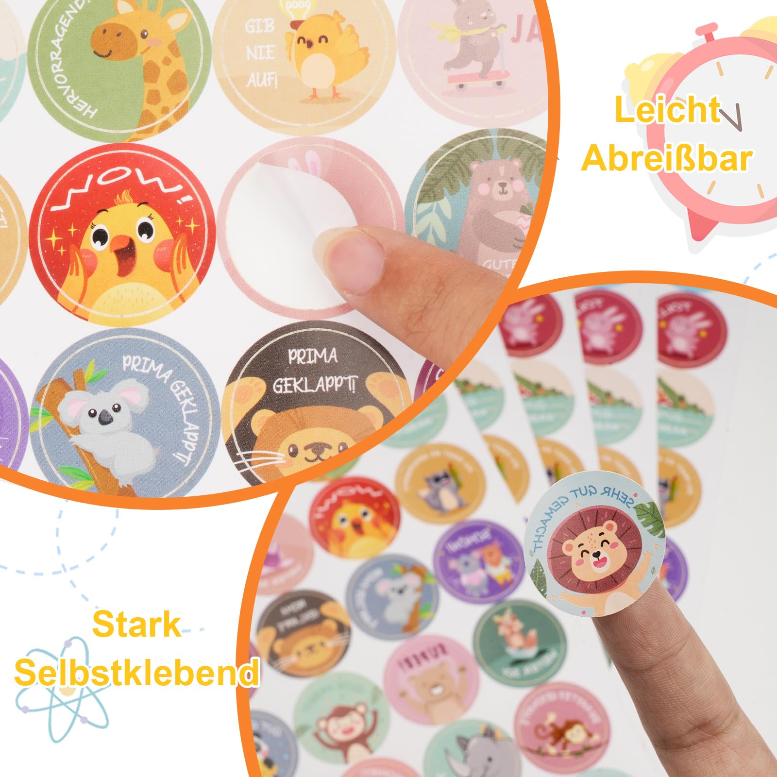 1600 niedliche Tieraufkleber für dein Belohnungssystem! Perfekt für Lehrer, Eltern und Erzieher, um Kinder zu motivieren. Jeder Sticker hat 25mm Durchmesser und zeigt eines von 32 verschiedenen Tiermotiven mit süßen Sprüchen. Hergestellt aus hochwertigem Papier - farbecht, geruchlos und sauber geschnitten. Die Aufkleber sind selbstklebend und lassen sich leicht abziehen und aufkleben. Ideal für Hausaufgaben, Unterricht, Belohnungssysteme, Bastelprojekte oder Kindergeburtstage. In praktischen Bögen verpackt - insgesamt 50 Bögen mit je 32 Stickern. Fördert spielerisch die Lernfreude und macht Kindern riesig Spaß! Einfach zu verwenden und vielseitig einsetzbar. Perfekt für Kindergarten- und Grundschulkinder. Mach das Lernen zum Vergnügen mit diesen niedlichen Tierstickern!
