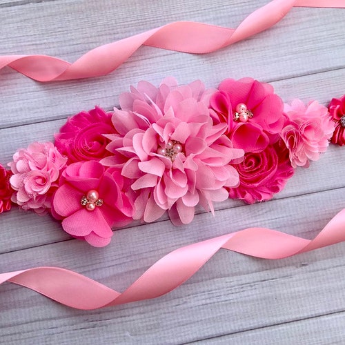 Nishine Pink Maternity Sash Belt – Blumen-Gürtel Für Baby-Shower, Mama In Spe & Brautjungfern