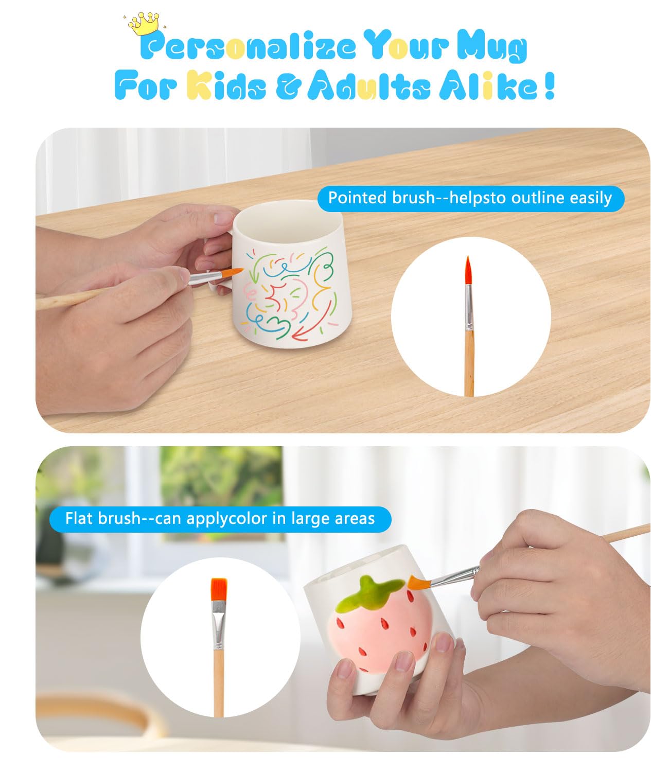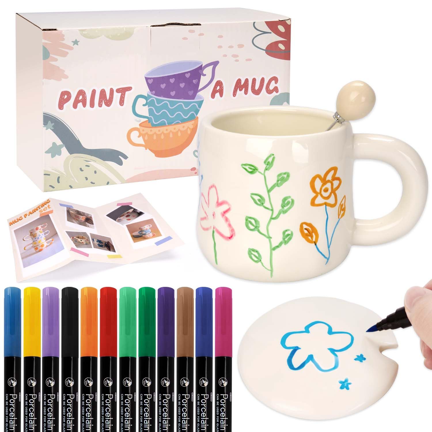 Keramik Tassen Bemalen Set - DIY Malset Mit 2 Tassen, Farben & Pinseln