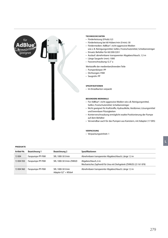 Achtung, diese Pressol Fasspumpe ist ein echter Alleskönner! Pump damit Benzin, Diesel, Heizöl oder sogar Kühlerschutzmittel - alles kein Problem. Mit 24 Litern pro Minute und etwa 0,4 Litern pro Hub geht das Abfüllen ratzfatz. Die Fassverschraubung G2\ und M 64x4 passt perfekt auf handelsübliche 60, 200 und 220 Liter Fässer. Das coole Teleskopsaugrohr ist von 355 bis 955mm verstellbar - damit erreichst du auch die letzte Ecke im Fass. Komplett mit Auslaufbogen und Saugkorb - einfach zusammenschrauben und lospumpen. Super praktisch für Werkstatt, Bauernhof oder Haushalt. Kein langes Gepumpe mehr, sondern schnelles, effizientes Arbeiten. Einfach aufs Fass schrauben und mit wenigen Handgriffen ist der Kanister voll. So macht Kraftstoff umfüllen richtig Spaß! Ein echter Klassiker, der sich seit Jahren bewährt hat.