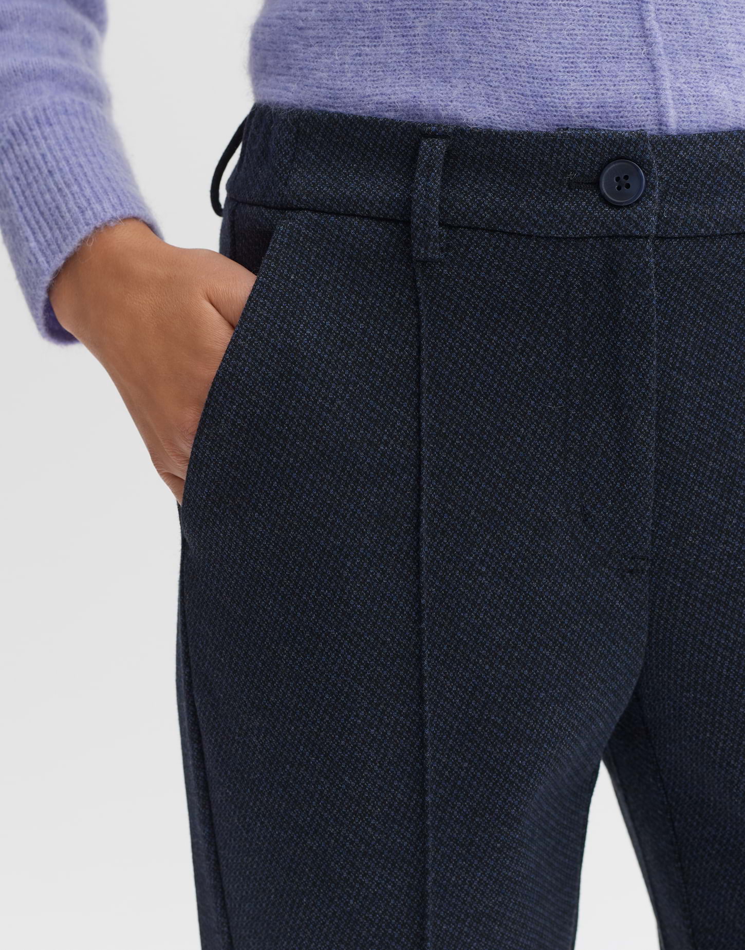 Hey, diese OPUS City Pants 'Melina' ist einfach der Hammer für jeden Tag! Die relaxed Passform mit schmal zulaufendem Bein und dezentem Fischgrat-Muster sieht total stylisch aus. Mit Mid-Rise Bund und Komfortbund sitzt sie superbequem - perfekt fürs Büro oder unterwegs. Kombinier sie einfach mit Loafers für einen smarten Look oder mit Sneakers für lässige Tage. Aus hochwertigem Webmaterial gefertigt, das angenehm auf der Haut liegt und lange hält. OPUS steht für nachhaltige Mode, die feminin und zeitlos ist. Ein echter Allrounder, den du immer wieder anziehen wirst!