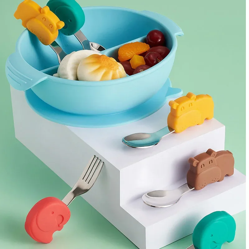 Vicloon Baby Besteck Set - Edelstahl Gabel & Löffel Mit Tier-Motiven Für Kleinkinder