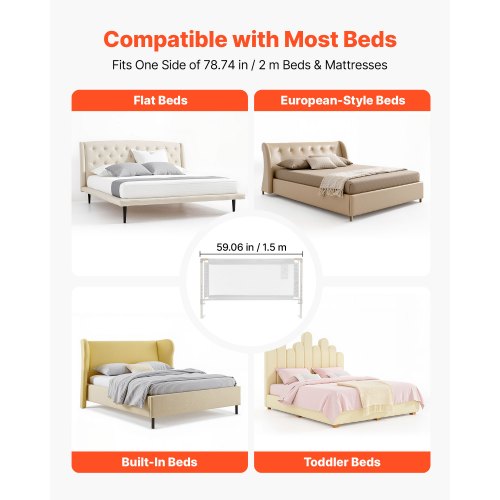 VEVOR Bettgitter 150cm - Höhenverstellbarer Kinderschutz Für Betten