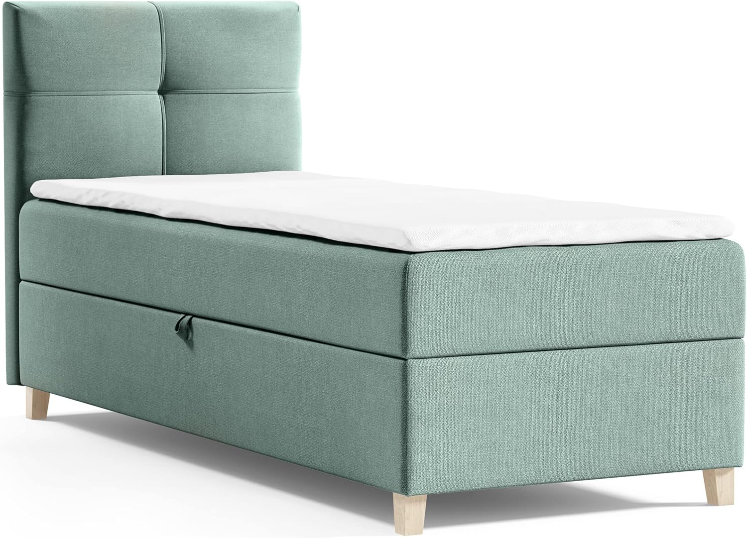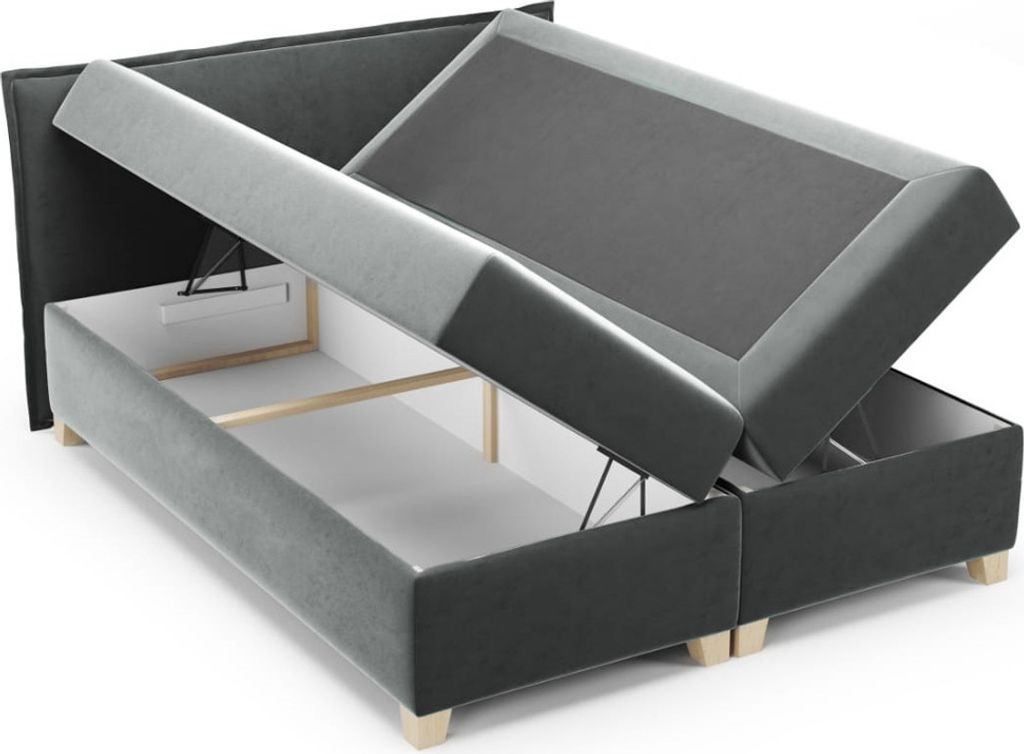 Richtig gemütlich schlafen im Fren Mini Boxspringbett! Dieses kompakte Einzelbett (90x200 cm Schlaffläche) bietet alles für erholsamen Schlaf. Die mittelharte Bonell-Matratze mit hochelastischem Schaumstoff sorgt für optimale Unterstützung. Besonders praktisch: Der integrierte Bettkasten mit Hebeautomatik bietet jede Menge Stauraum für Bettwäsche oder andere Dinge. Du kannst wählen, ob der Kasten von links oder rechts geöffnet werden soll. Der weiche Velours-Bezug in Graphit fühlt sich samtig an und ist super pflegeleicht. Mit dabei ist auch ein komfortabler Topper aus 3-4 cm hochelastischem Schaumstoff für extra Liegekomfort. Die Holzfüße geben dem Bett Stabilität und ein elegantes Aussehen. Perfekt für Kinderzimmer, Gästezimmer oder kleine Schlafzimmer - hier schläft es sich einfach gut!