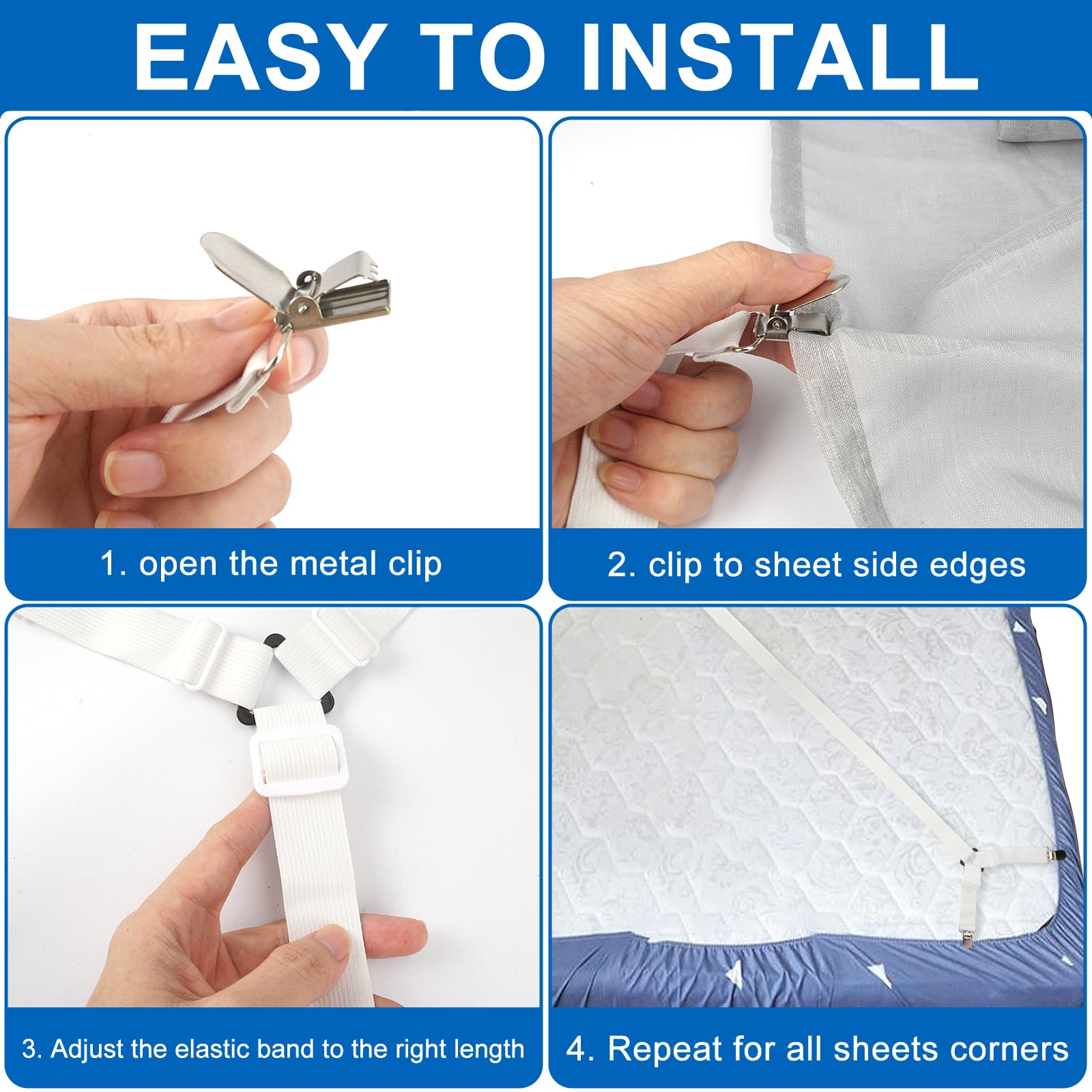 2 Stück Verstellbare Bettlakenspanner - Mit Metallclips 70-280 Cm