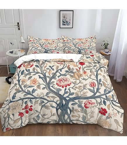 Schlafzimmer-Träume in Vintage-Optik! Diese wunderschöne William Morris Bettwäsche im nostalgischen Blumen-Design verwandelt dein Schlafzimmer in eine Wohlfühloase. Das 2-teilige Set besteht aus einem Bettbezug 135x200cm und einem Kissenbezug 80x80cm (Bettdecke nicht enthalten). Aus ultraweicher Microfaser - atmungsaktiv, reißfest und super bequem. Der doppelseitige Druck mit lebendigen Farben bleibt auch nach häufigem Waschen erhalten. Praktischer Reißverschluss und 4 Eckbänder halten die Decke sicher an Ort und Stelle. Maschinenwaschbar bei kalten Temperaturen, trocknergeeignet und bügelfrei. Perfekt als Geschenk für Kinder, Erwachsene oder einfach für dich selbst. Schafft eine gemütliche Atmosphäre für erholsamen Schlaf in Frühling, Sommer, Herbst und Winter. Einfach bezaubernd!