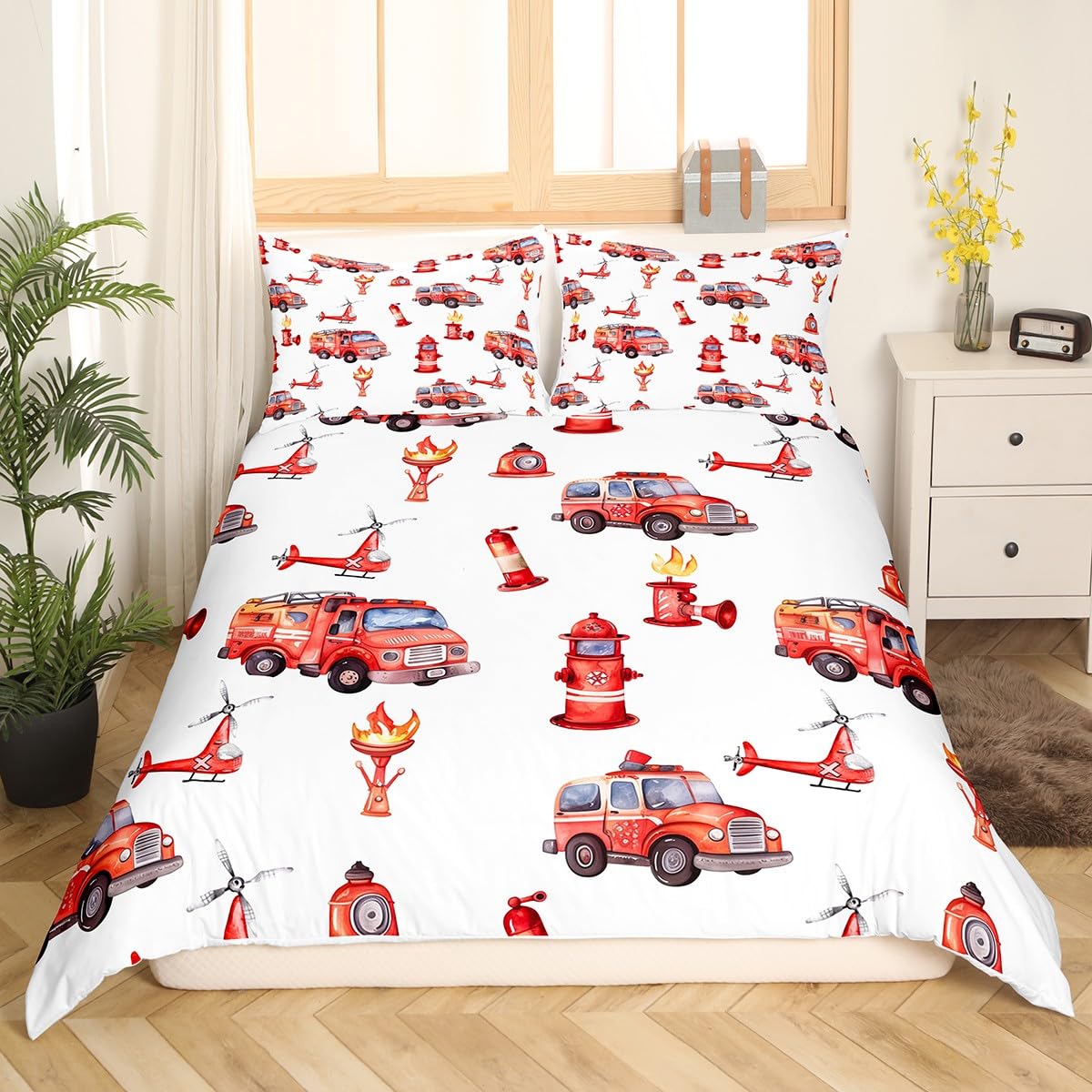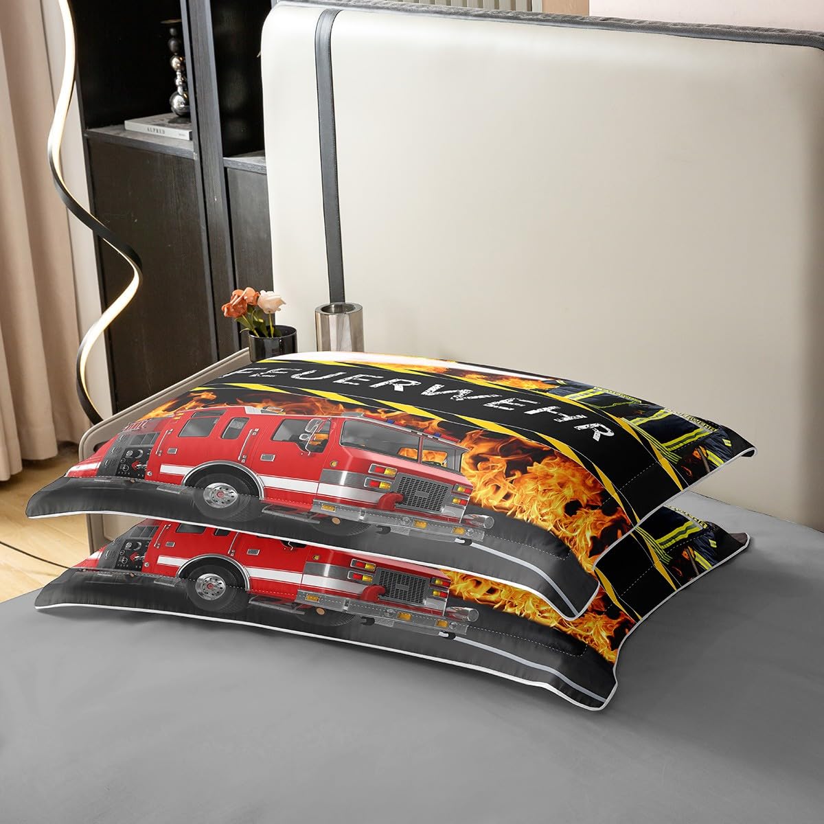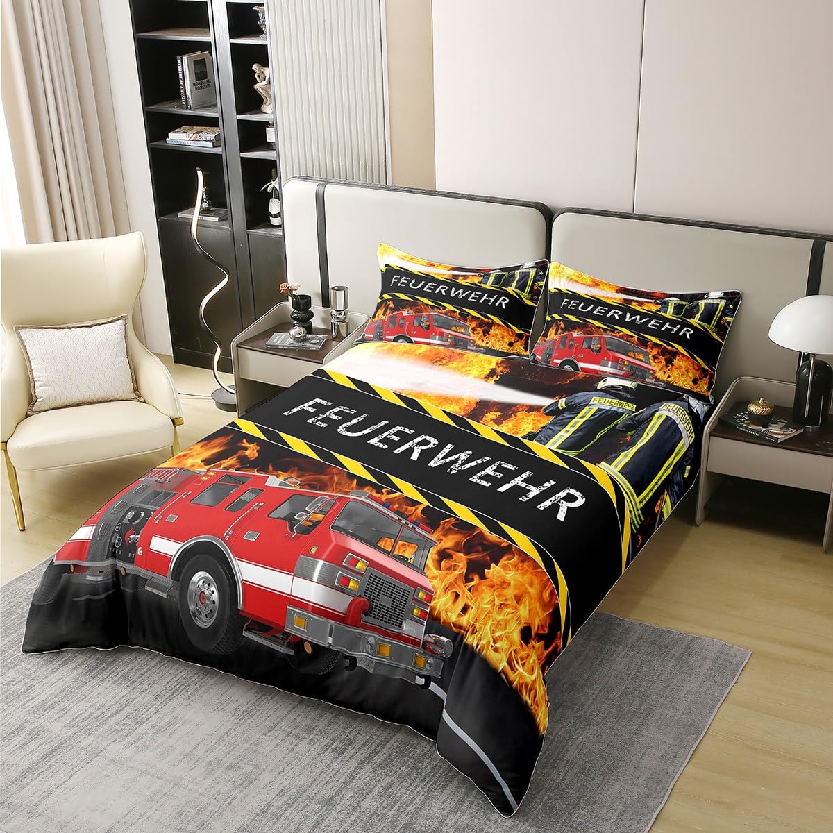 Homemissing Feuerwehr Bettwäsche Set 155x220cm | 100% Baumwolle Kinderbettwäsche | Mit Kissenbezug