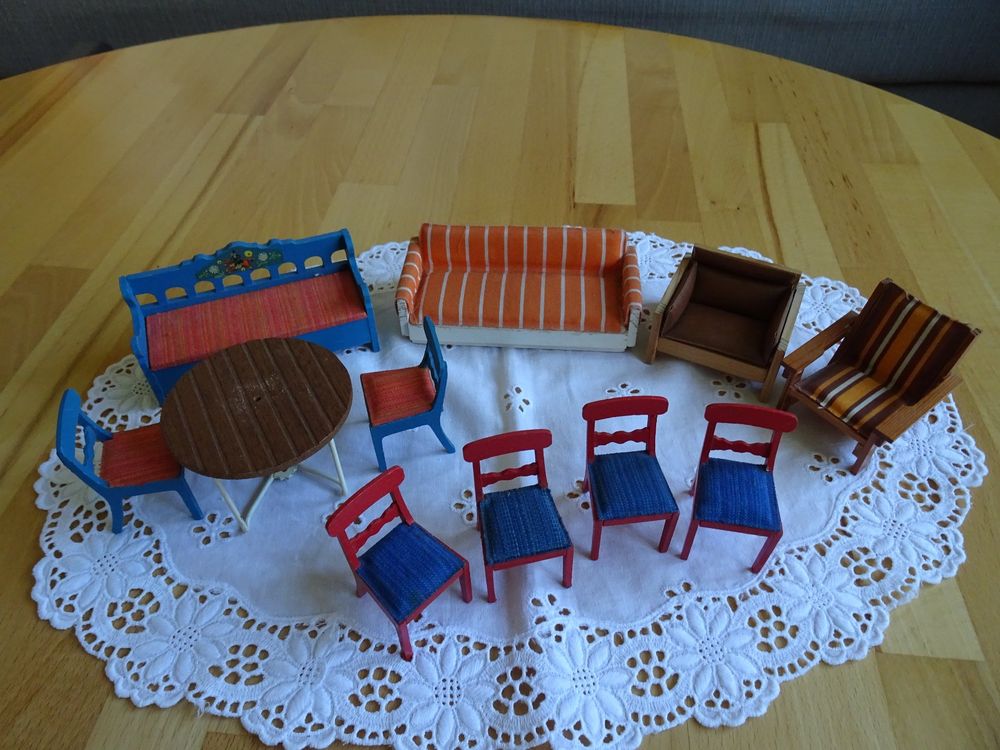 Oh wie süß! Dieses Harilla Puppenhaus Möbel Set bringt Gemütlichkeit in dein Puppenhaus. Das blaue Doppelsofa aus weichem Flanell ist einfach bezaubernd! \\n\\nIm Set enthalten: 1x Doppelsofa und 2x Einzelsessel - perfekt für die Puppen-Wohnzimmer Einrichtung. Die Maße sind ideal für den Maßstab 1:30: Das Doppelsofa misst 45x25mm und die Einzelsessel 26x28x24mm. \\n\\nDie handwerkliche Verarbeitung ist echt top - jedes Detail sitzt! Ob für deine 1:30 Puppenhaus-Kollektion, Action-Figuren oder Puppen, diese Möbel machen immer eine gute Figur. \\n\\nKleine Info: Wegen handgemessener Größen kann's mal 3mm Abweichung geben, und je nach Bildschirm kann die Farbe minimal anders aussehen. Aber trust me - in echt sieht's genauso niedlich aus wie auf den Bildern! Perfektes Geschenk für Puppenhaus-Fans.