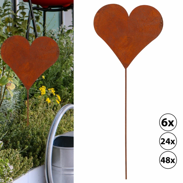 Aus echtem Rost mit authentischer Patina - der rustikale Look passt perfekt in jede Gartengestaltung. Einfach in Blumentöpfe, Beete oder Balkonkäsen stecken.
