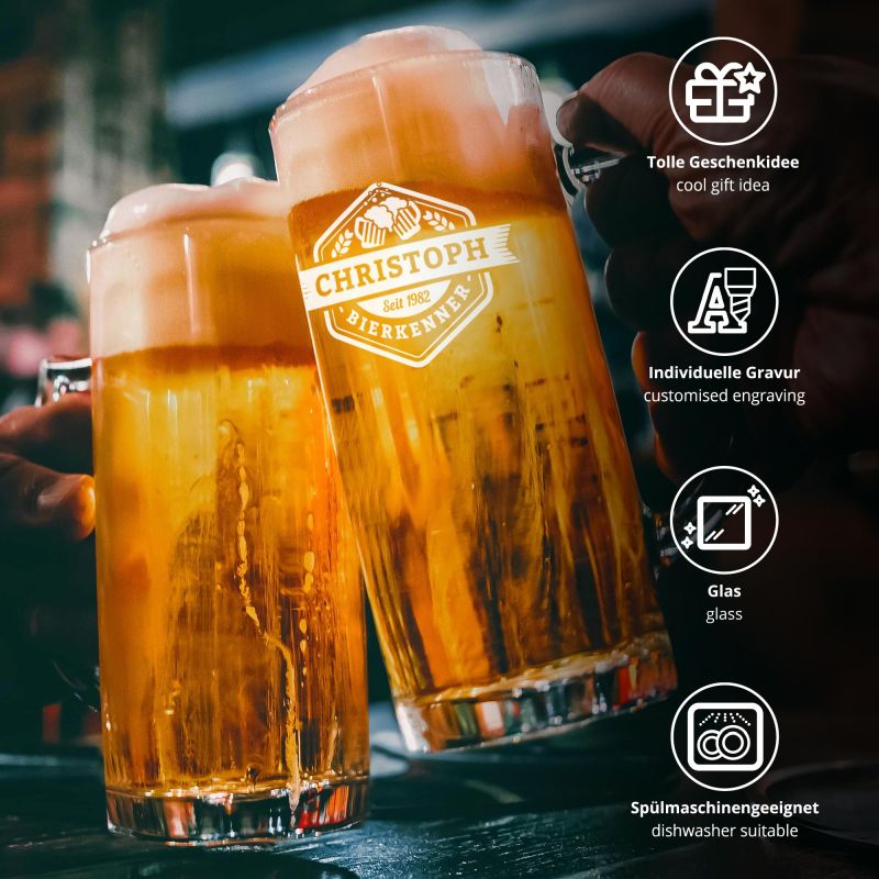 Für echte Biker und Bierfans! Dieser Bierkrug wird persönlich - mit deinem Namen und coolen Motorrad-Motiven. Aus satiniertem Glas mit griffigem Henkel. 400ml Fassungsvermögen - perfekt fürs Feierabendbier nach der Tour. Die Gravur ist hochwertig und langlebig. Ein super Geschenk für Vater, Freund oder dich selbst! Auch mit individuellem Spruch oder Insider-Witz. Macht jeden Stammtisch oder Grillabend zum Highlight. Robust und stylisch - ein echter Hingucker! Einfach unvergesslich für Motorrad-Enthusiasten.