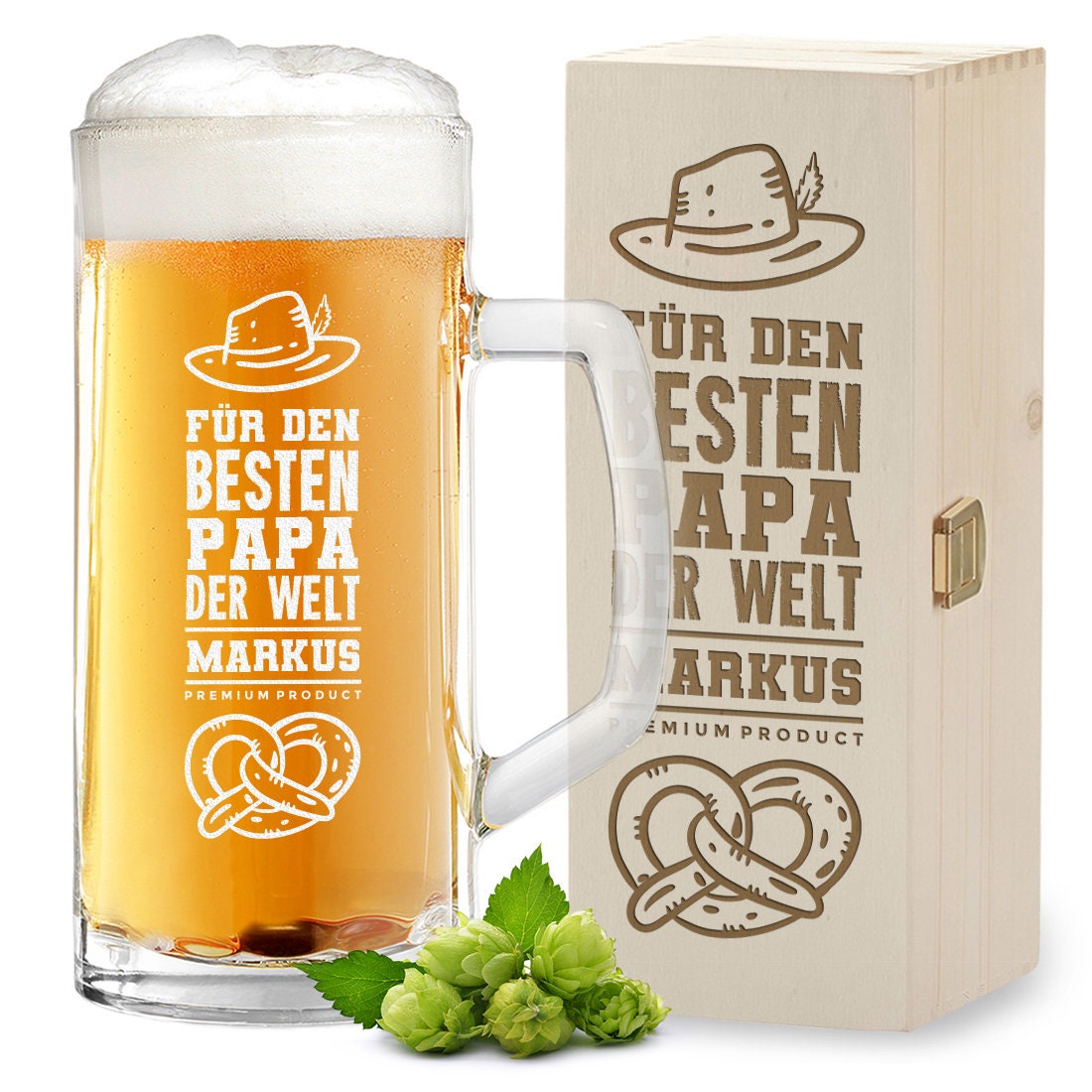 Personalisiertes Bierkrug Set Mit Gravur - 0,5L Glas & Holzkiste Geschenk