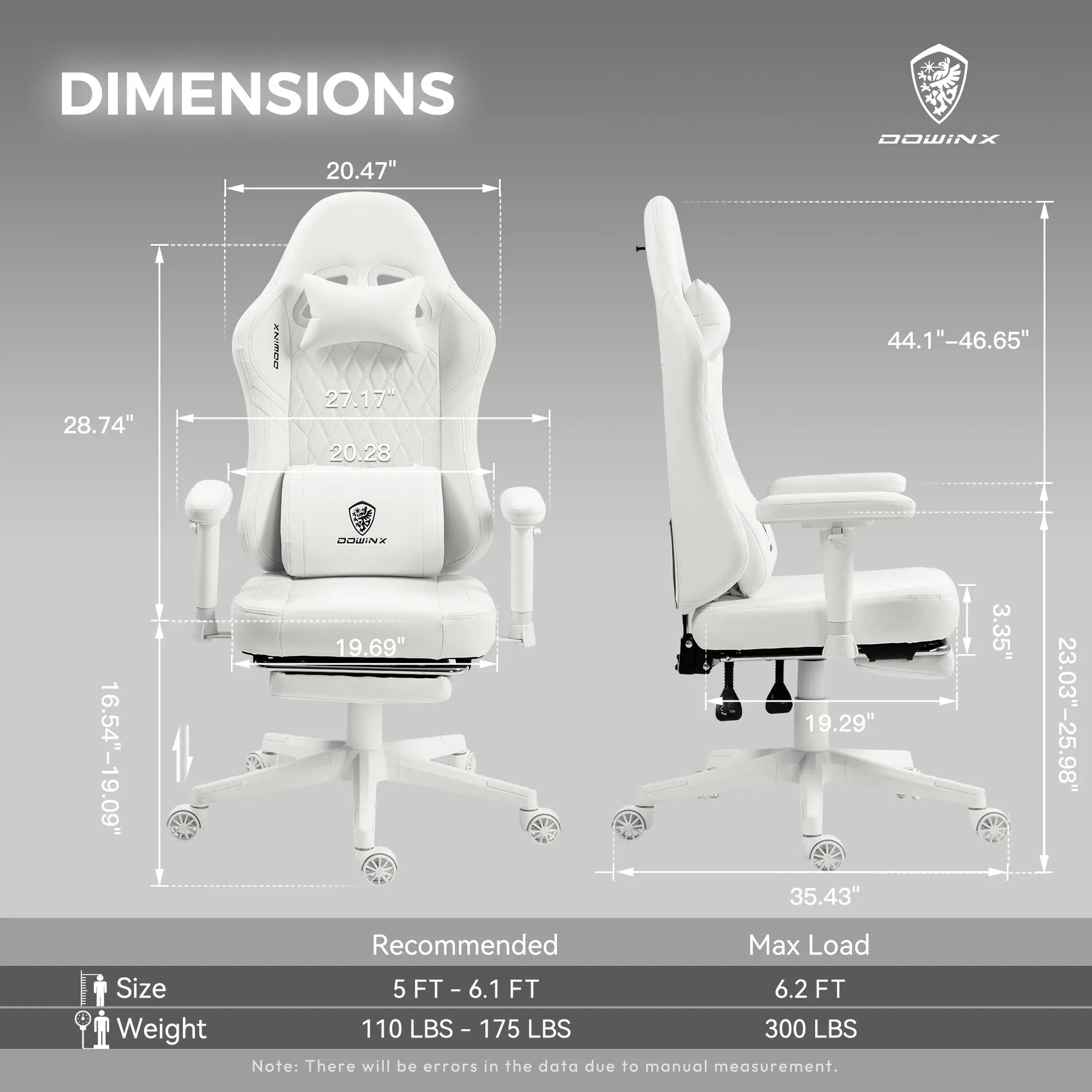 Dowinx Gaming Stuhl Big And Tall Mit Massage & Fußstütze - 180kg Kapazität