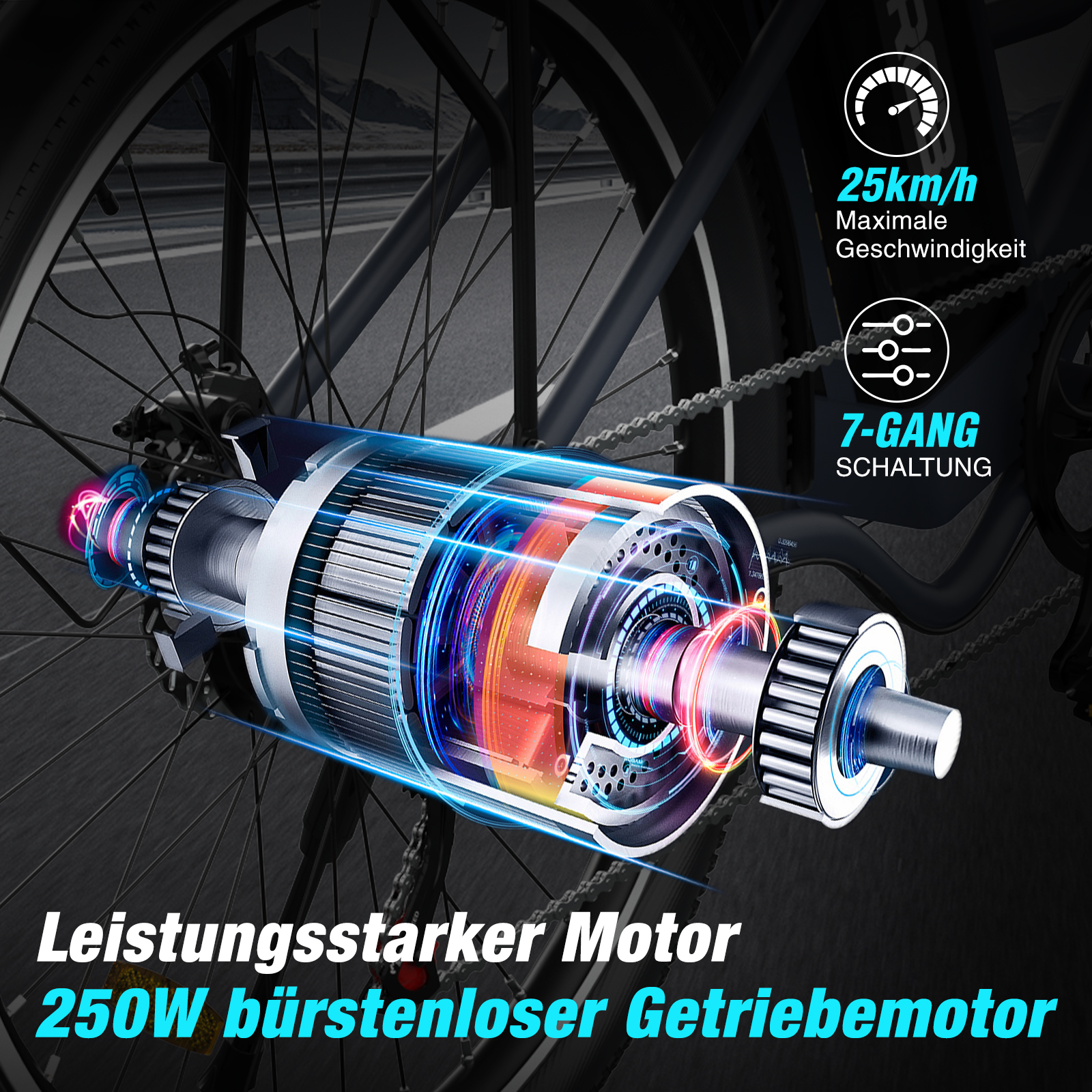 Ab aufs E-Bike! Der RCB 26 City Flitzer hat alles, was du brauchst: 250W Motor für ordentlich Power, 7 Gänge für jede Steigung und eine Reichweite von 35-90km mit dem 36V/10,4Ah Akku. Doppelscheibenbremsen vorne und hinten sorgen für sicheres Bremsen, dazu LED-Scheinwerfer für gute Sicht. Das Beste: Es kommt schon zu 80% montiert - mit Video-Anleitung klappt der Rest easy. Inklusive wasserdichter Fahrradtasche für dein Gepäck. Perfekt für Stadt, Vorort und leichte Trails. Einfach aufladen und losfahren - der Spaß kann beginnen!