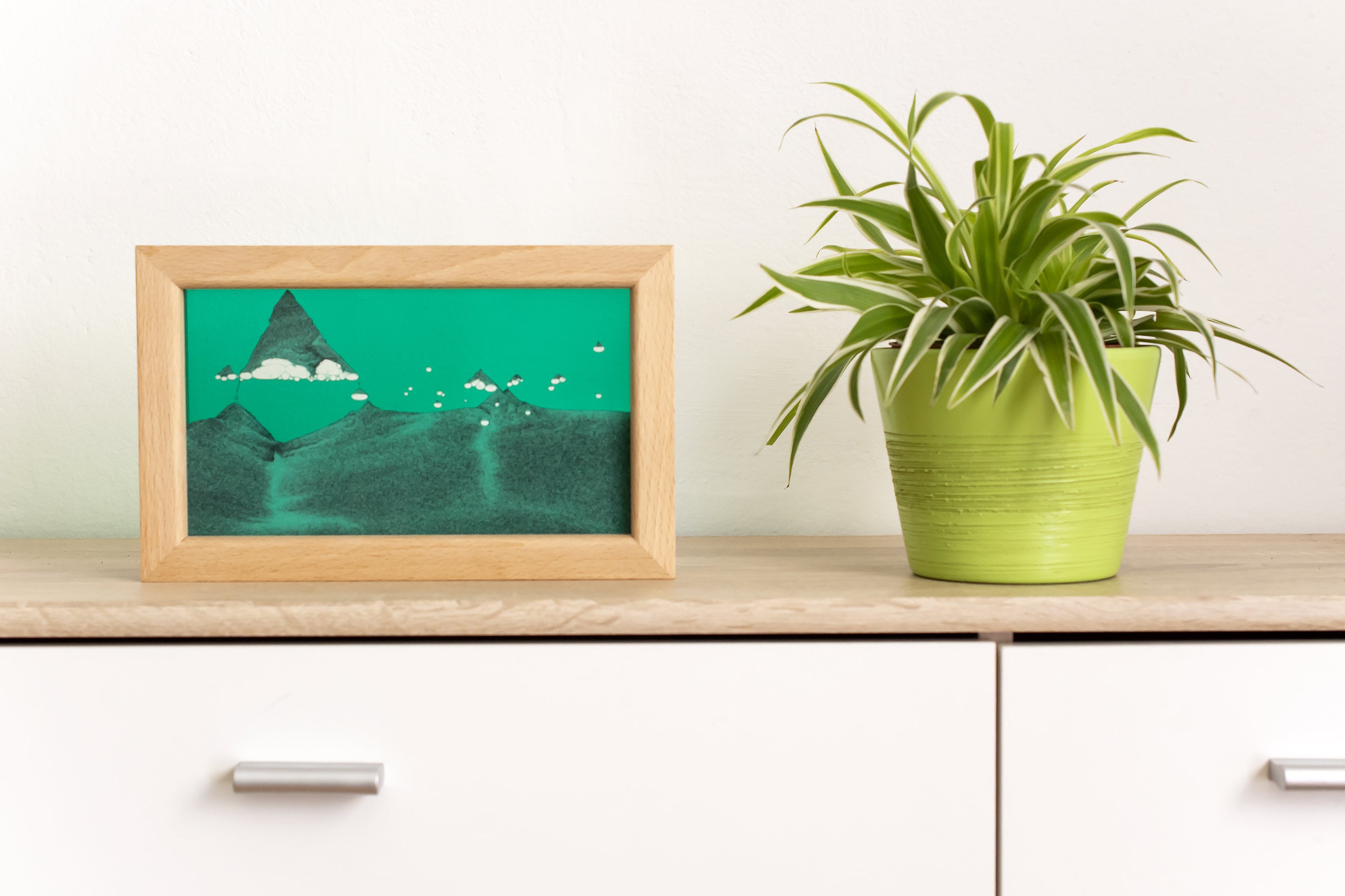 Einfach an die Wand hängen und beim Drehen zusehen, wie der Sand langsam rieselt. Perfekt fürs Wohnzimmer, Büro oder als besonderes Geschenk für Gestresste.