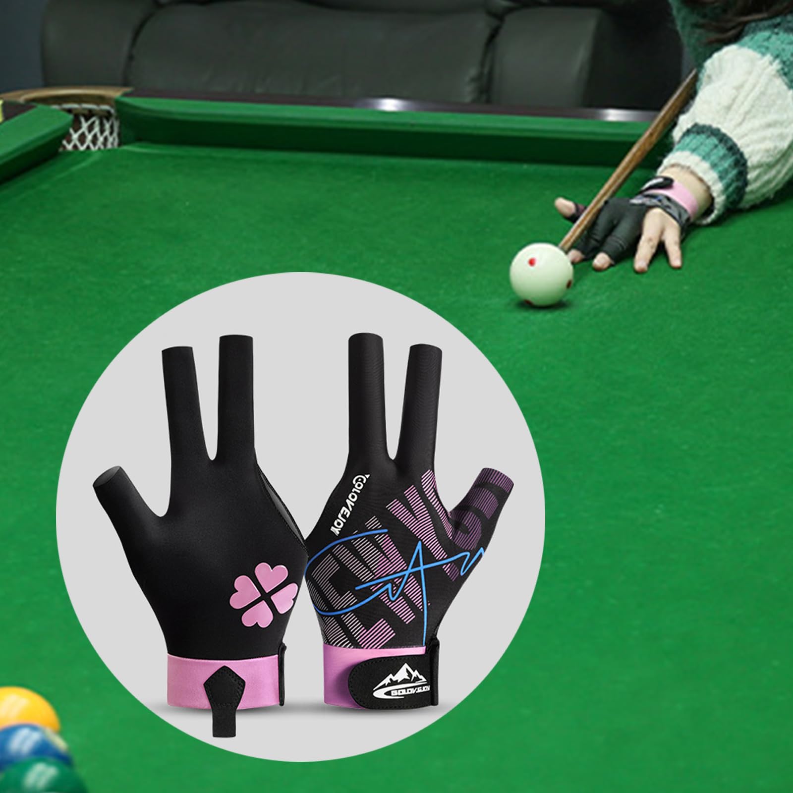 3-Finger Billard Handschuh - Baumwolle, Pink - Für Pool & Snooker