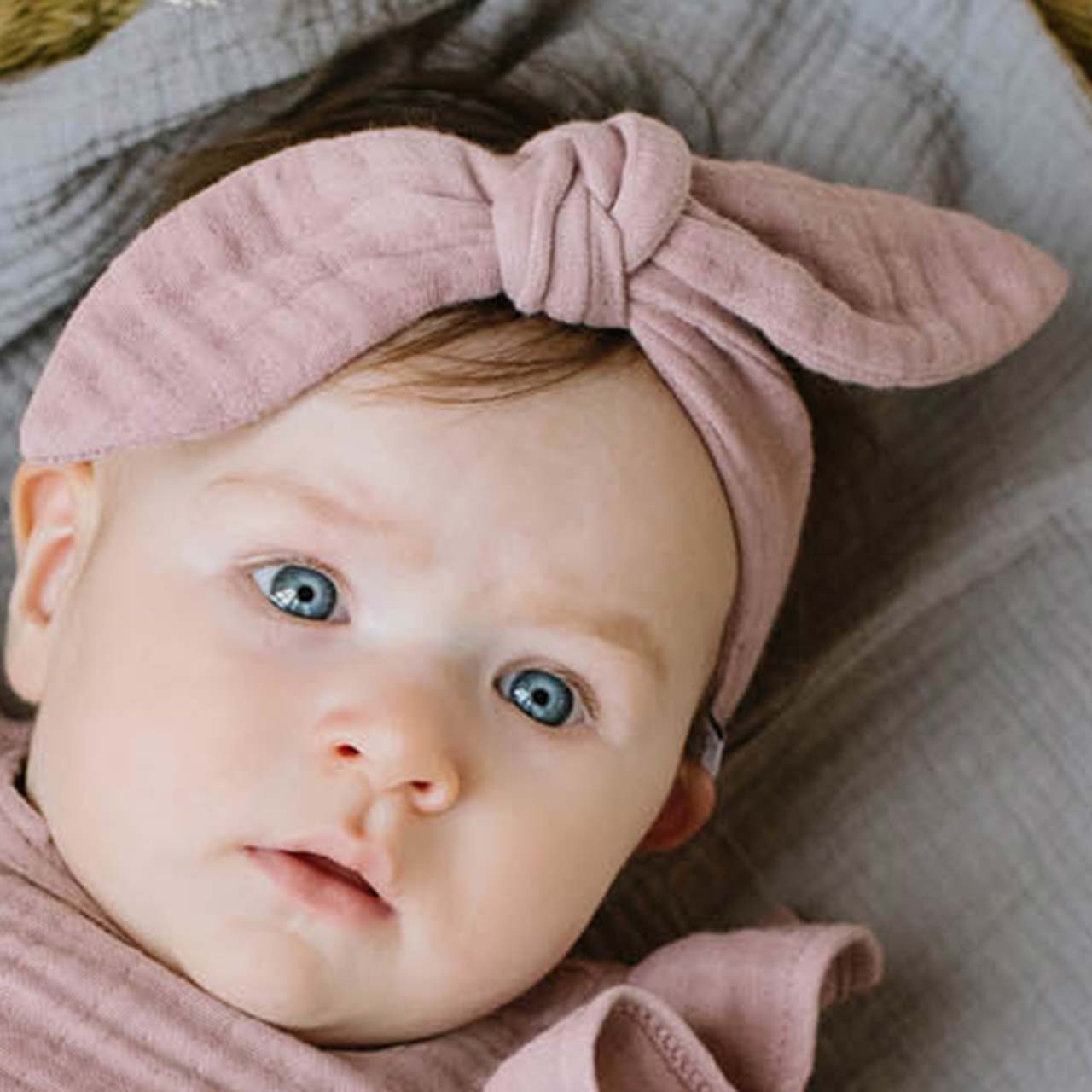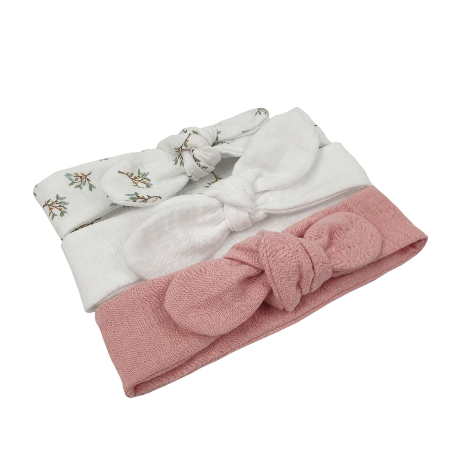 PinkZebra 3er Set Musselin-Stirnbänder - Bio Baumwolle Für Baby Mädchen 0-12 Monate, Atmungsaktiv & Hautsympathisch