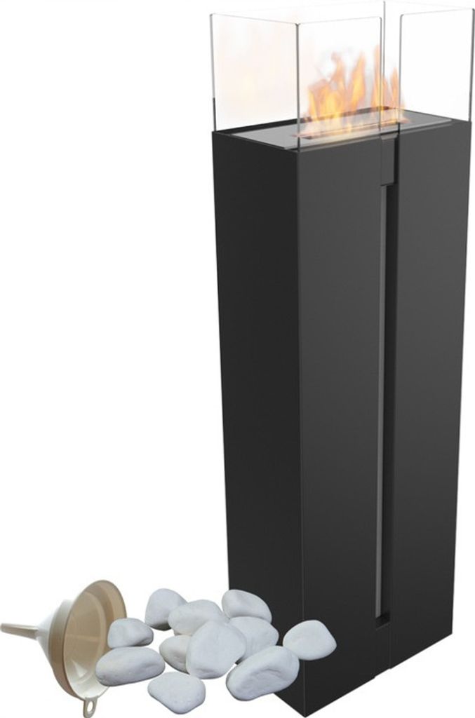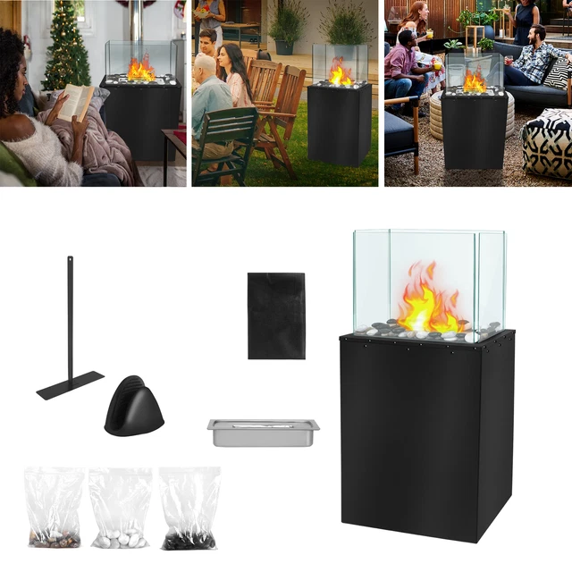 PEILU Bioethanol Kamin 40cm - Freistehende Feuersäule Mit Glas Windschutz