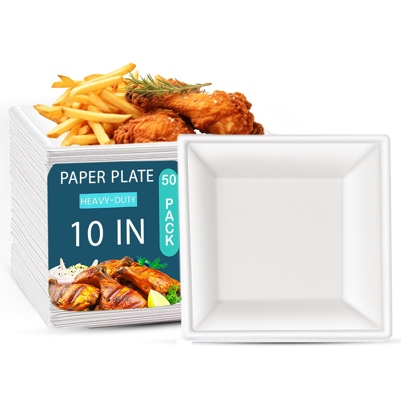 50 Stück Pappteller Biologisch Abbaubar 25,4cm - Kompostierbare Einwegteller Aus Zuckerrohr