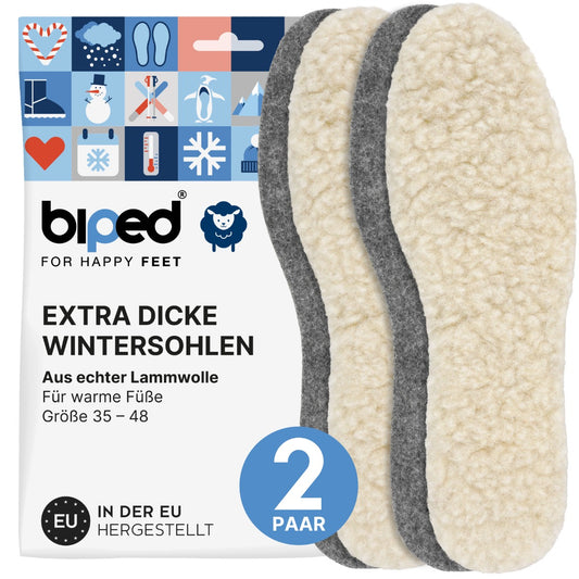 Biped Kinder Winter-Einlegesohlen 2 Paar - Mit Echter Lammwolle & Aluminium-Schicht