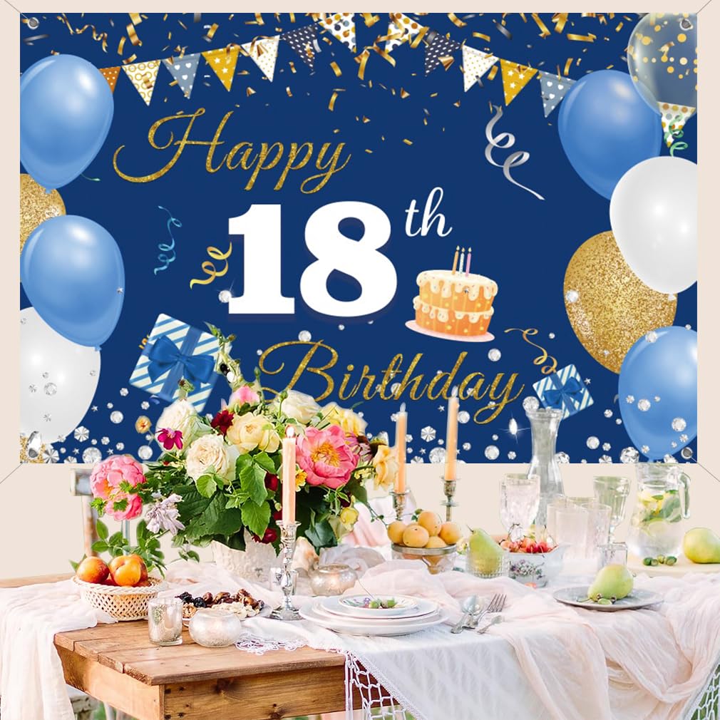 Happy 18th Birthday Banner 185x110cm - Großes Stoffbanner Für Geburtstagsfeiern
