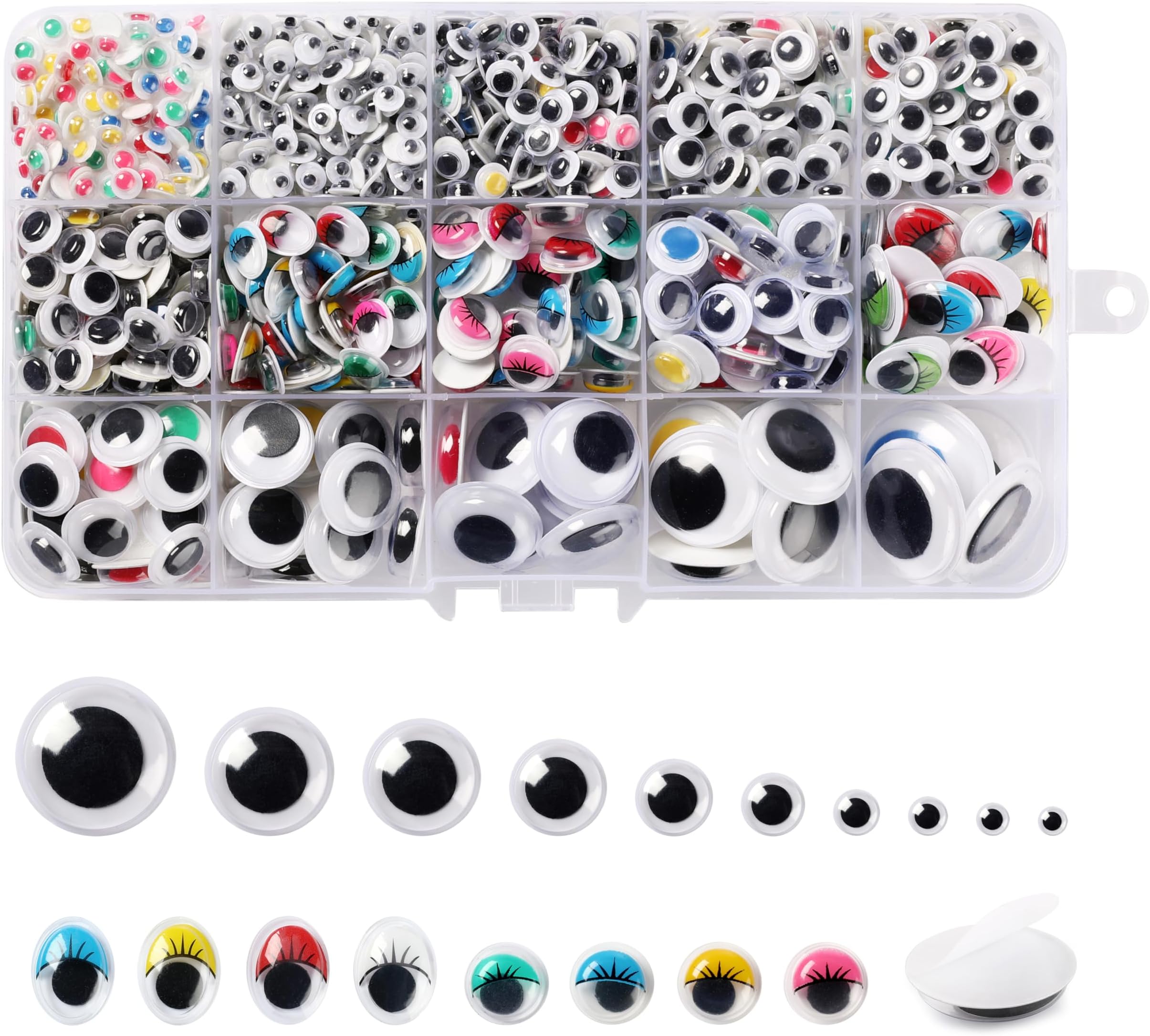 TOAOB 1250 Wackelaugen Selbstklebend - 4mm Bis 12mm - Für Basteln & Scrapbooking