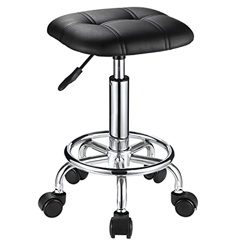 BEWISHOME Rollhocker Verstellbar - Drehhocker Bis 200kg Mit PU-Sitz