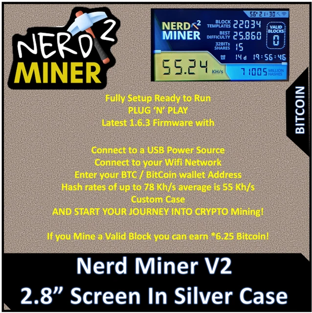 NerdMiner V2 Pro Bitcoin Miner - 307KH/S Mit Display Für Solo Mining