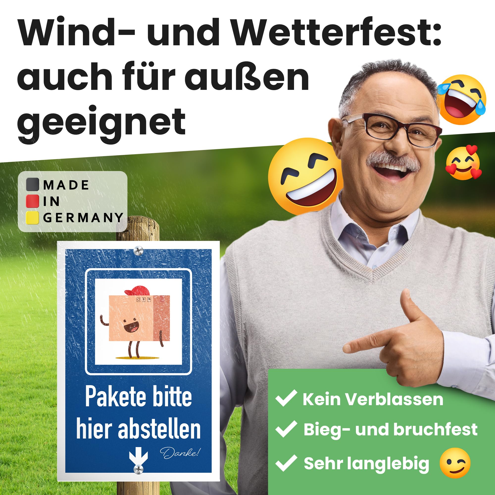 Paketboten-Frust adé! Dieses Metallschild zeigt genau, wo deine Pakete hingehören. Aus Aluminium, 15x20cm groß - wetterfest und langlebig. Mit klarem Pfeil und freundlichem Text: 'Pakete bitte hier ablegen, Danke!' Vorgestanzte Löcher für einfache Montage an Tür oder Wand. Kein lästiges Pakete abholen mehr - einfach den Ablageort markieren und Zeit sparen. Auch als Deko-Element geeignet. Hol dir endlich Kontrolle über deine Paketzustellung - mit diesem praktischen Hinweisschild!
