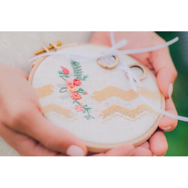 Happyyami Hochzeits Ringkissen Mit Blüten-Design - Wiederverwendbar Dekorativ Für Trauungen