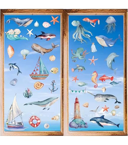 BOOMTOP Maritime Fensterbilder 9 Blätter - Selbstklebende Meer Motiv Aufkleber Möwe Leuchtturm