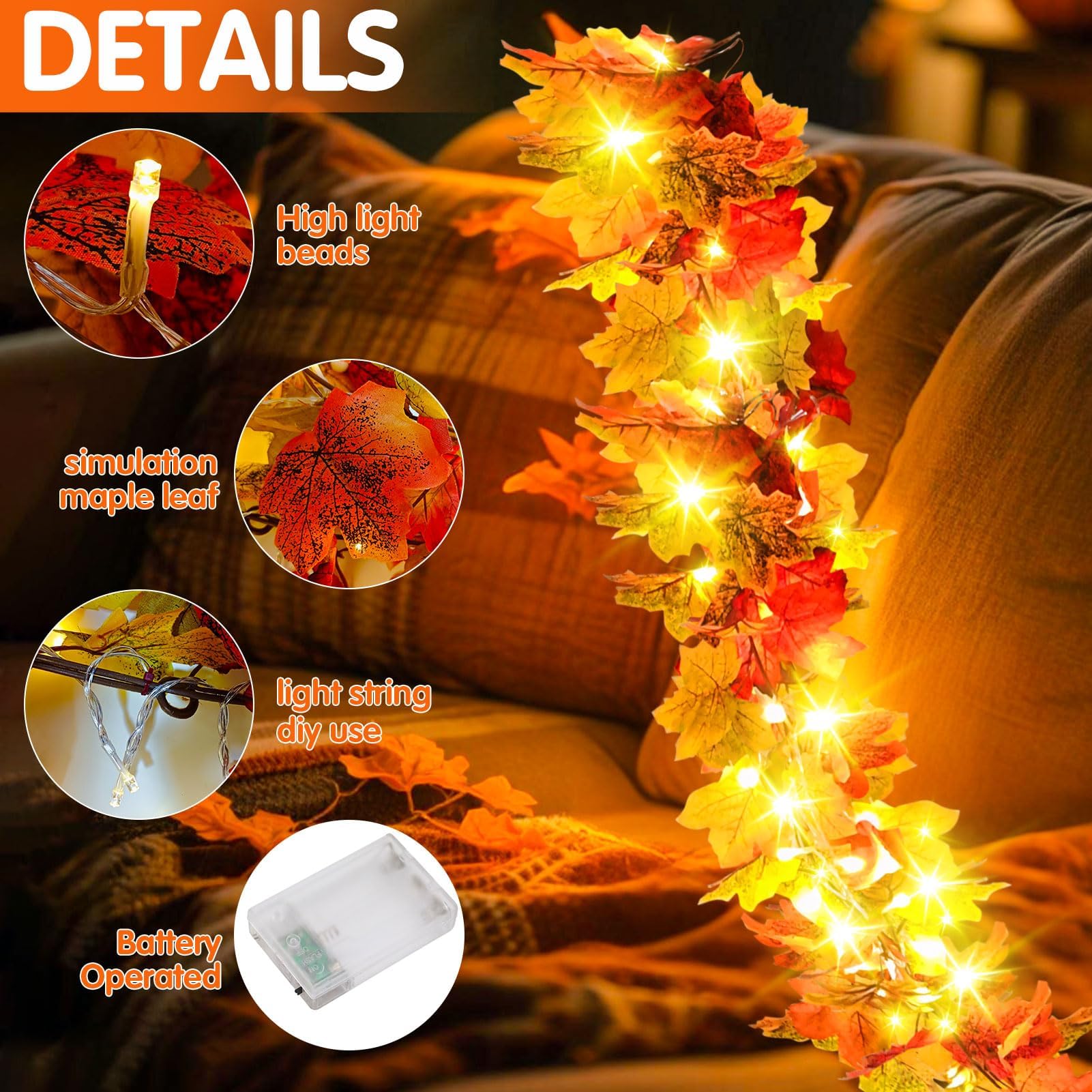Herbst Lichterkette Mit Blättern - 176cm LED Girlande Für Deko Innen & Außen