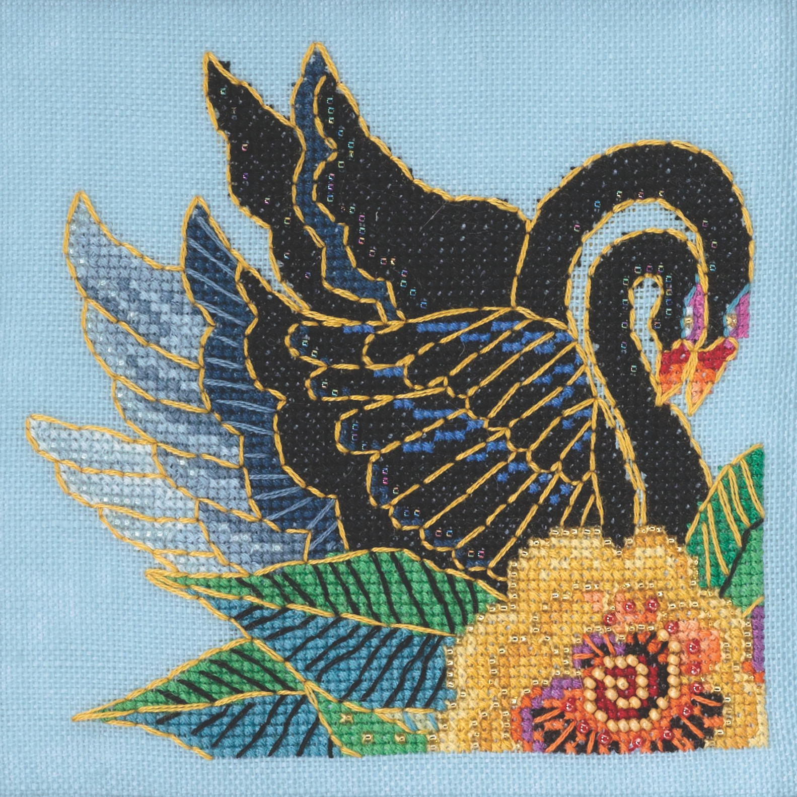 Mill Hill Kreuzstich-Set Black Swans | Mit Perlen & Zählmuster | Laurel Burch Kollektion
