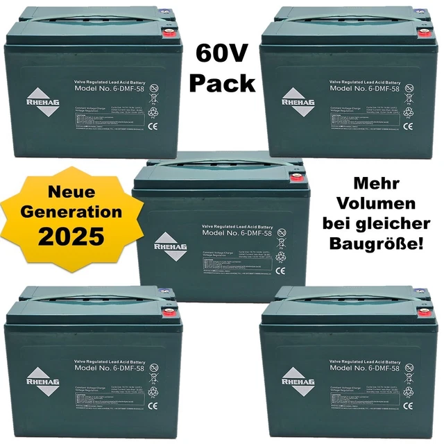 Das Set besteht aus 5 einzelnen 12V AGM Akkus (5x12V = 60V) - perfekt als Ersatz für ECONELO, AKTIVIMO, STORMBORN, LIZZY und andere Kabinenfahrzeuge.
