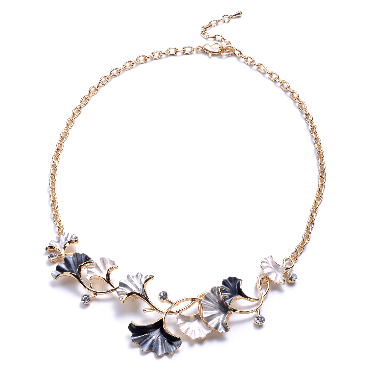 Inilbran Ginkgo Blatt Halskette - Vintage Choker Mit Kristall, Silberfarben