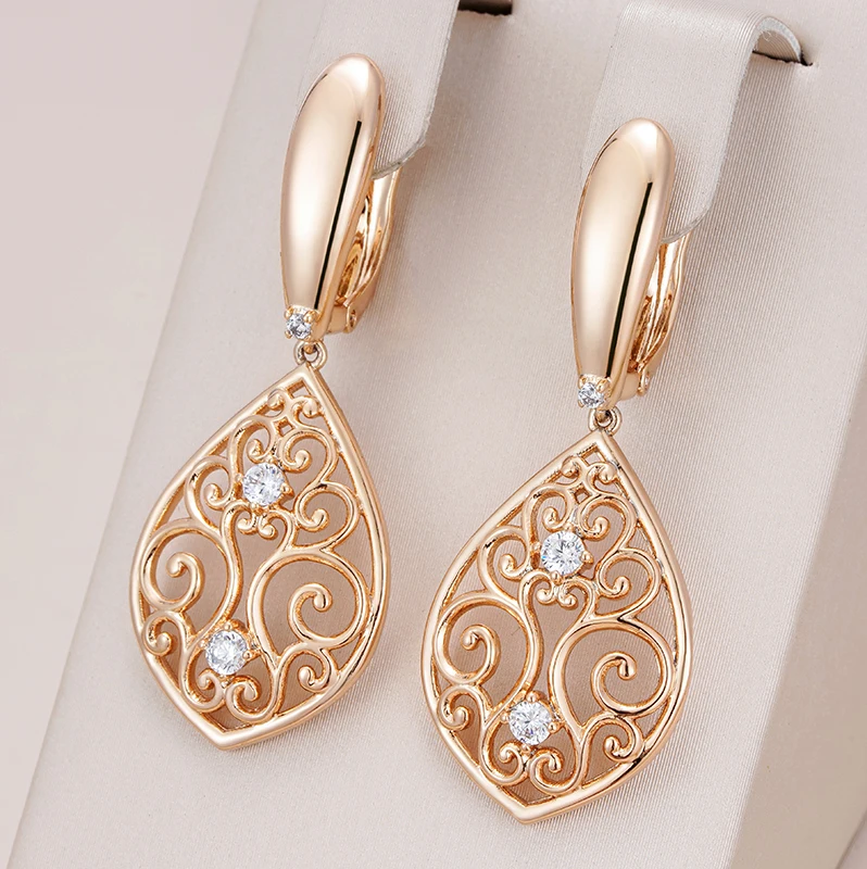 Diese wunderschönen Blatt-Ohrringe in 585 Roségold sind ein absoluter Hingucker! Das zarte Design kombiniert Natur-Eleganz mit modernem Vintage-Charme.\\n\\nProduktdetails:\\n• Material: Kupfer mit 585 Roségold\\n• Größe: 2,1 x 1,1 cm\\n• Gewicht: ca. 2,4 g\\n• Stil: Drop Ohrringe\\n• Design: Blattform\\n\\nPerfekt für jeden Anlass:\\n• Romantische Dates\\n• Hochzeiten und Feiern\\n• Büro und Alltag\\n• Geburtstagsgeschenke\\n• Jubiläen und Valentinstag\\n\\nDie Ohrringe liegen angenehm leicht am Ohr und sind auch bei längerem Tragen super bequem. Das warme Roségold passt zu jeder Hautfarbe und macht jedes Outfit eleganter.\\n\\nEin ideales Geschenk für deine Liebste, Freundin oder dich selbst! Verpackt in einer hübschen Geschenkbox - bereit zum Verschenken oder selbst tragen.