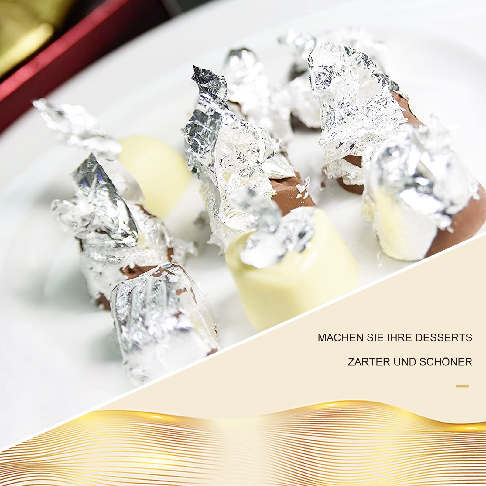 Das kann die Silberfolie: • Veredelt Kuchen, Pralinen und Desserts • Eignet sich für DIY-Projekte und Kunsthandwerk • Perfekt für Möbelrestauration und Malerei • Ideal für Maniküre und Geschenkdekoration