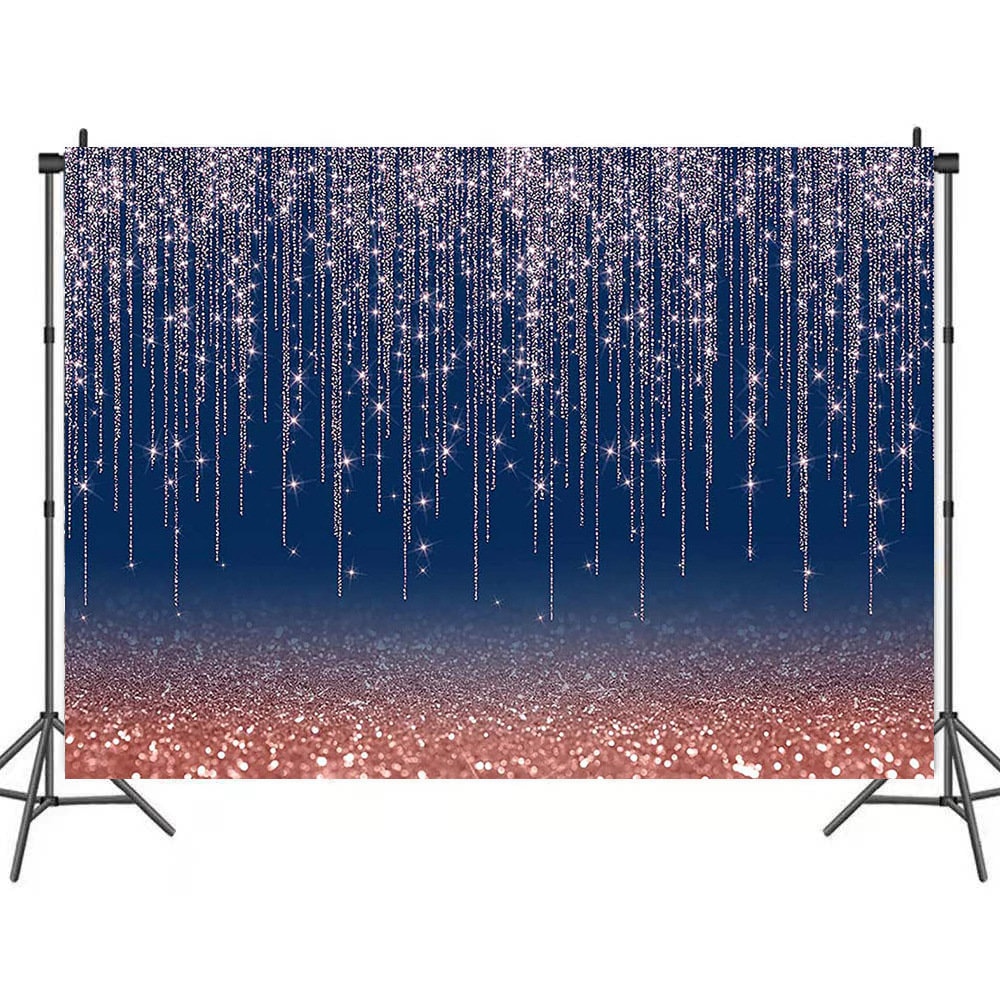 AIIKES Fotohintergrund 7x5FT Blau Gold Glitter - Vinyl Hintergrund Für Studio