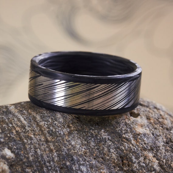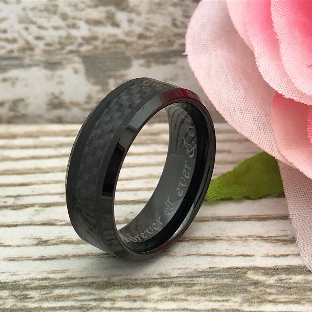 Wolframkarbid Ring Mit Kohlefaser - Blau-Schwarz-Rot 8mm Für Damen & Herren