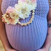 Baby Shower Schärpe - Blaue Mutterschafts Gürtel Mit Blumen Für Schwangerschaftsfotos