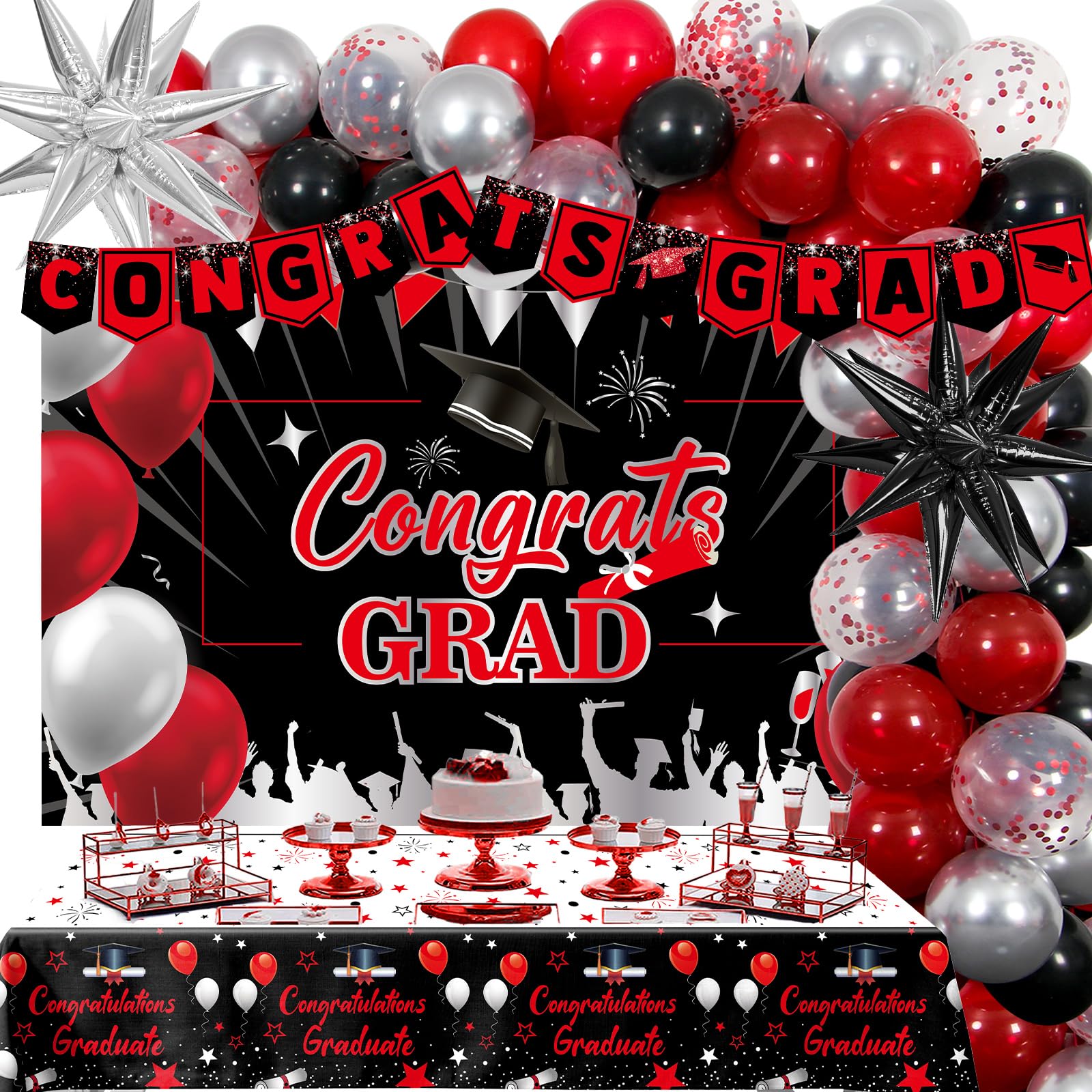 AIBIIN Abschluss Hintergrund - Blaue & Silberne Partydekoration Für Abschlussfeiern