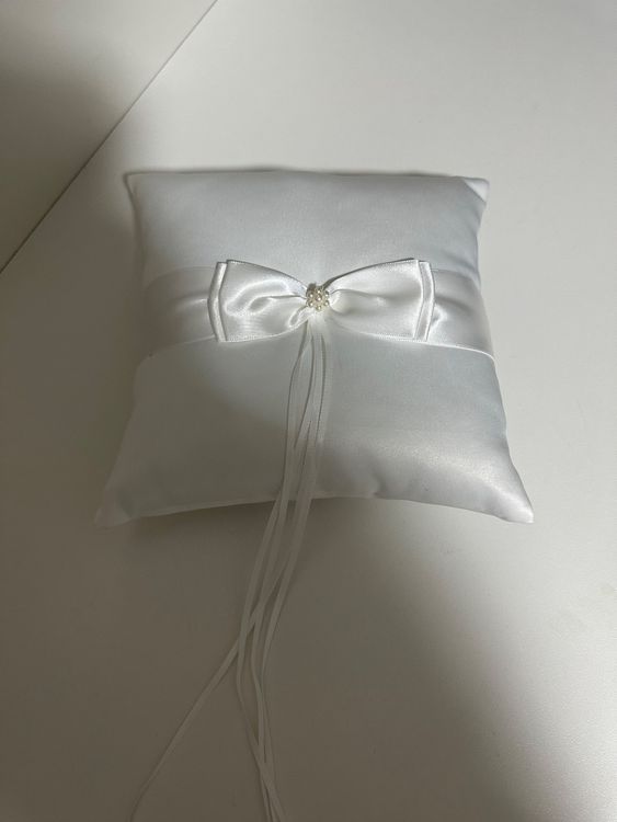 Traumhaft schönes Ringkissen für die Hochzeit! In blau mit Seidenband und funkelnden Strasssteinen. 20x20cm groß mit niedlichem Doppelherz-Design und Schleifen-Bowknot. Aus hochwertigem Polyester, Satin und künstlichen Diamanten - super edel verarbeitet. Nach der Trauung perfekt als Andenken oder Deko für Zuhause. Auch in anderen Farben erhältlich. Macht den Ringtausch zur unvergesslichen Zeremonie. Einfach die Trauringe drauflegen und den schönsten Moment des Lebens genießen!
